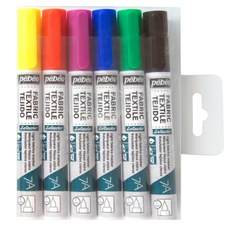 • Etui 6 Marqueurs Couleurs Classiques PEBEO 7A Tissu Clair Pointe Pinceau 1mm