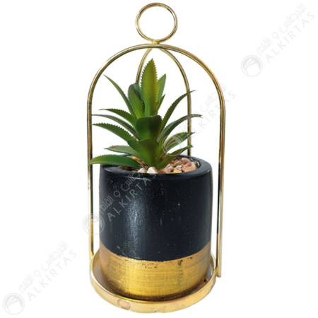 • Plante Décorative Artificielle Avec Pot En Argile Et Support En Métal Doré