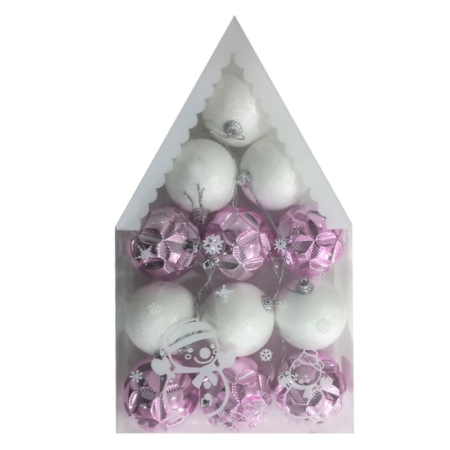 • Boules de Décoration Noël GM Rose et Blanc – 12pcs