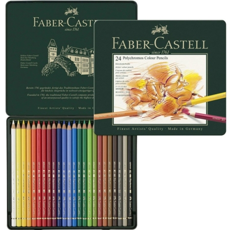 • Crayons de Couleur PolyChromos, Boite Métal 24pcs – Faber-Castell