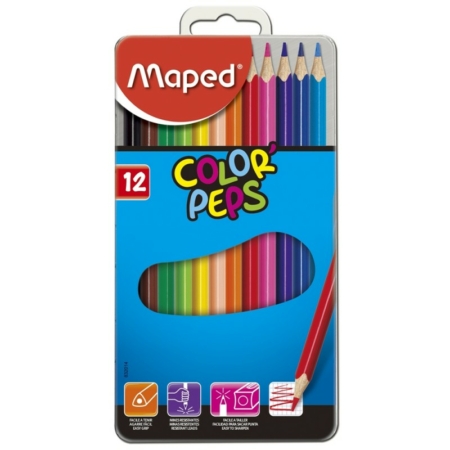 • Crayons Couleurs Color’Peps Boite Métallique 12pcs – Maped