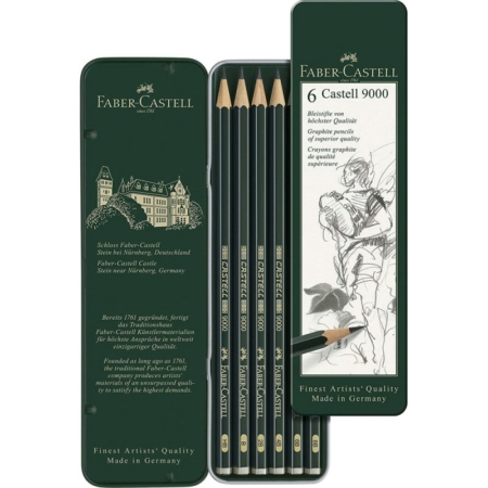 • Crayons Graphite Castell 9000, Boite Métal 6pcs – Faber-Castell