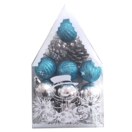 • Boules de Décoration Noël PM Bleu et Argenté – 12pcs
