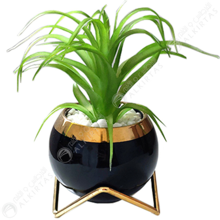 • Plante Décorative Artificielle Avec Pot En Céramique Et Support En Métal Doré