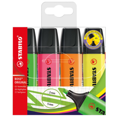 • Marqueur Stabilo Boss Classique – Pochette de 4 Pcs