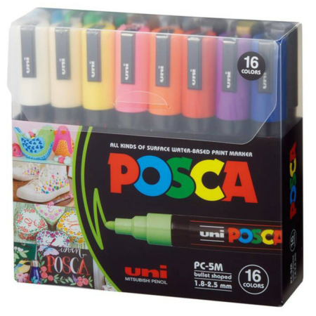 • Marqueurs Permanents de Peinture à Base d’Eau Uni POSCA PC-5M 16 Couleurs
