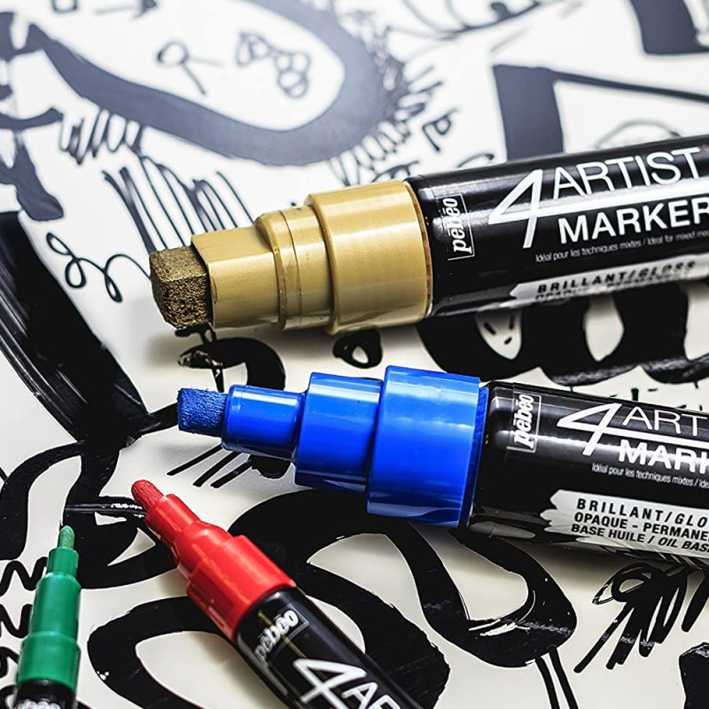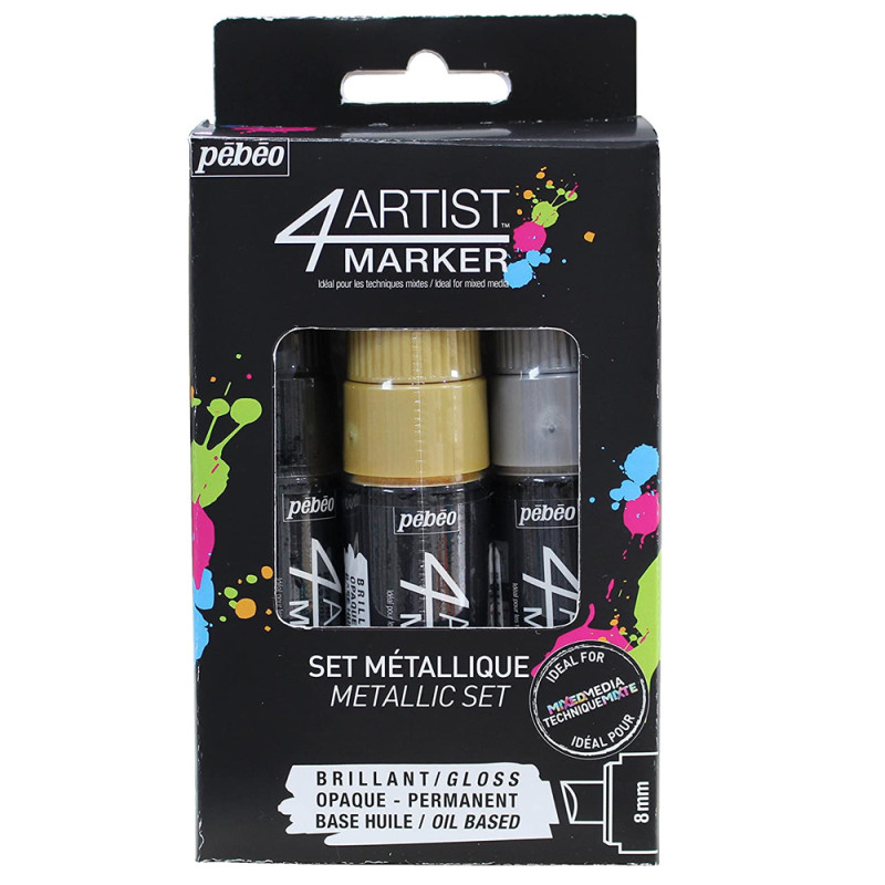 Assortiment de 3 marqueurs couleurs métalliques Base huile Finition brillante et opaque Excellente résistance à la lumière.