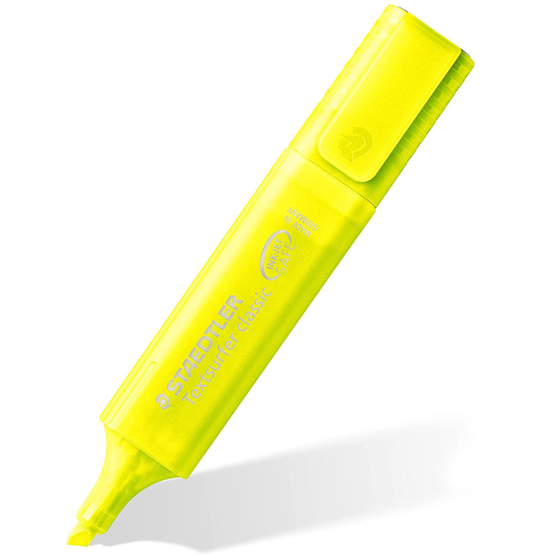 Surligneurs, Textsurfer Classic ensemble de 4 couleurs arc-en-ciel – jaune, orange, rose, vert dans un étui portefeuille en plastique. Grand réservoir d’encre pour des performances extra-longues. Séchage rapide, sans danger pour les jets d’encre. Point