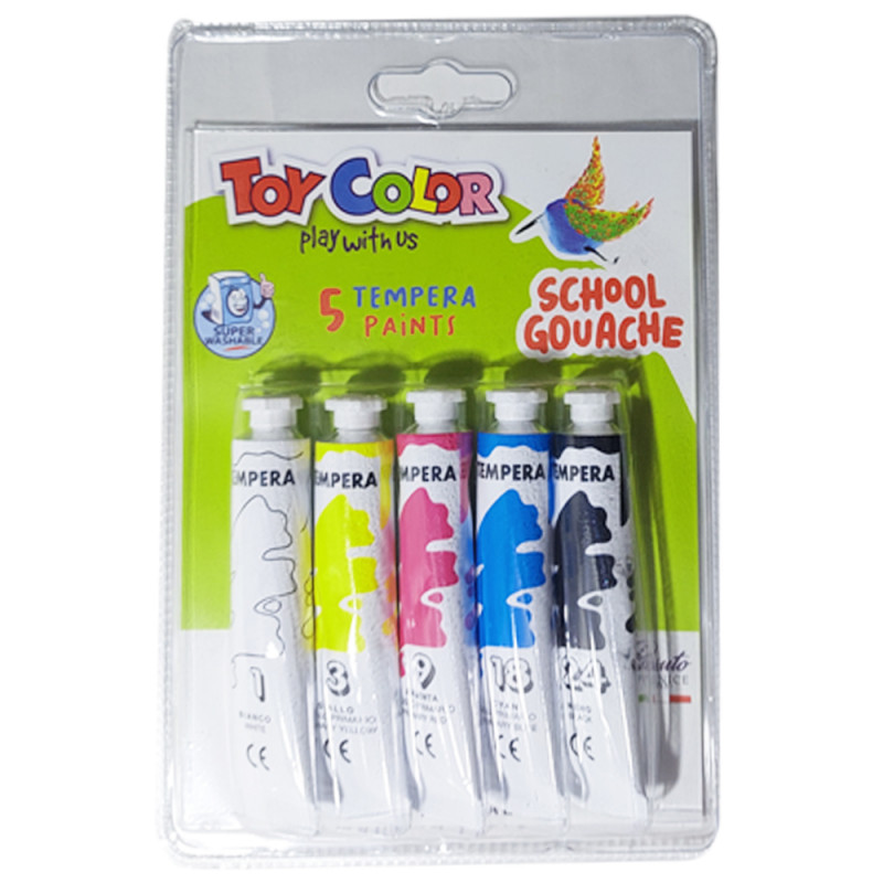 5 tubes couleurs assortis: blanc, jaune, magenta, bleu et noir