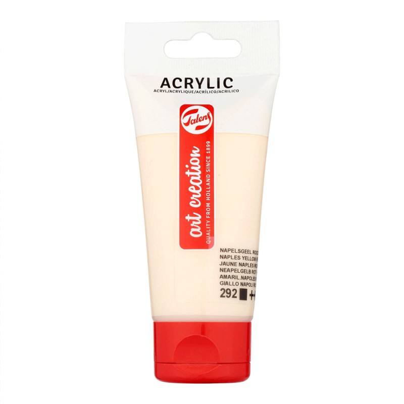 Cette peinture acrylique de couleur Jaune Naples Rouge Clair (292) est une couleur opaque avec une excellente résistance à la lumière (+++).