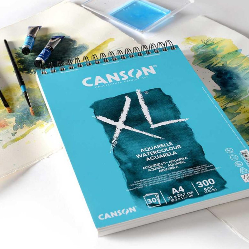 L’album Canson XL Aquarelle contient 30 feuilles de papier 300g/m², dédié à l’aquarelle et aux autres techniques humides.