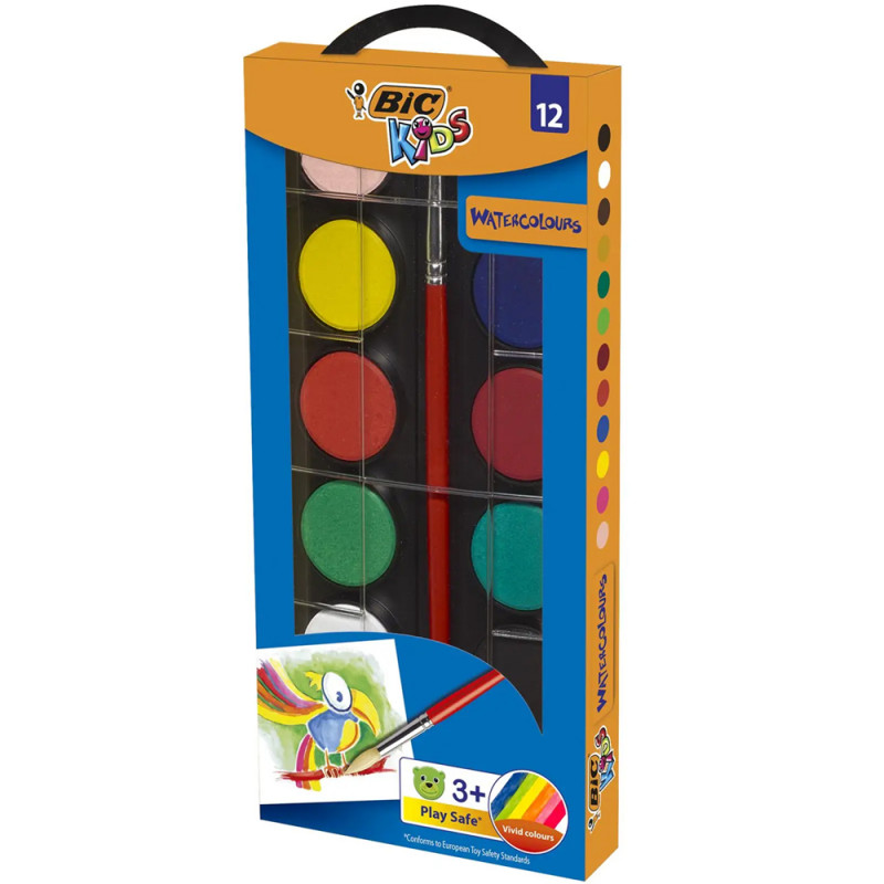 Stimulez l’imagination et la créativité de vos enfants dès 3 ans avec les peintures aquarelles BIC Kids Watercolours. Leur formule sèche permet un dépôt uniforme sur le papier et offre une bonne couverture. Déclinées en 12 couleurs vives, parfaitement