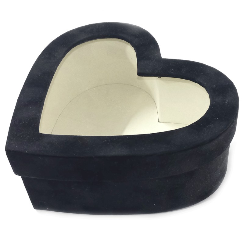 Boite Cadeau en Velours sous forme de Cœur – Couvercle Fenêtre – Grand Modèle – Noir