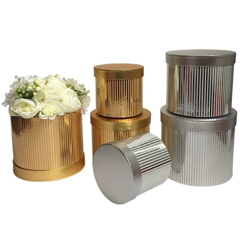 Boite Cadeau Cylindrique avec Rayures – Moyen Modèle – Diamètre : 17,5cm