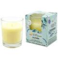 Bougie parfumée dans un verre à l’arôme intense de jasmin et formulée à base d’Huiles Essentielles.