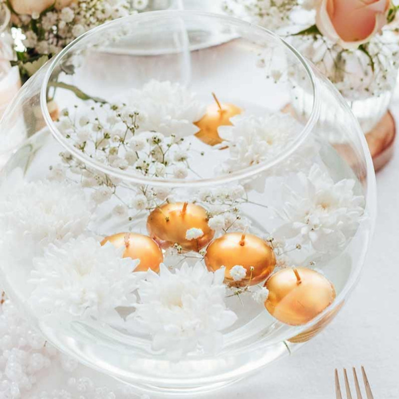 4 Bougies flottantes bronze nacré, qui apporte une ambiance chaleureuse et intime lors de votre soirée festive. Faites de votre soirée un moment magique et inoubliable avec ces jolies bougies flottantes qui viendront compléter par la même occasion une