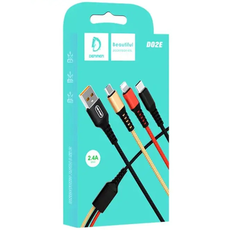Spécifications principales Câble USB DENMEN D02E 3 en 1 pour Lightning/Micro/Type C 2.4A 1.2m