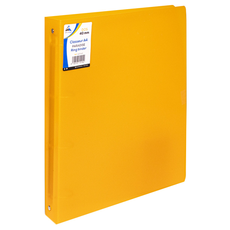 Classeur en PP Semi-Rigide, conçue en polypropylène translucide ligné avec une Epaisseur de(7/10ème). La Collection PARADISE est élaborée avec des couleurs lumineuses et un design brillant élégant. Adaptée à la protection des documents de format A4.