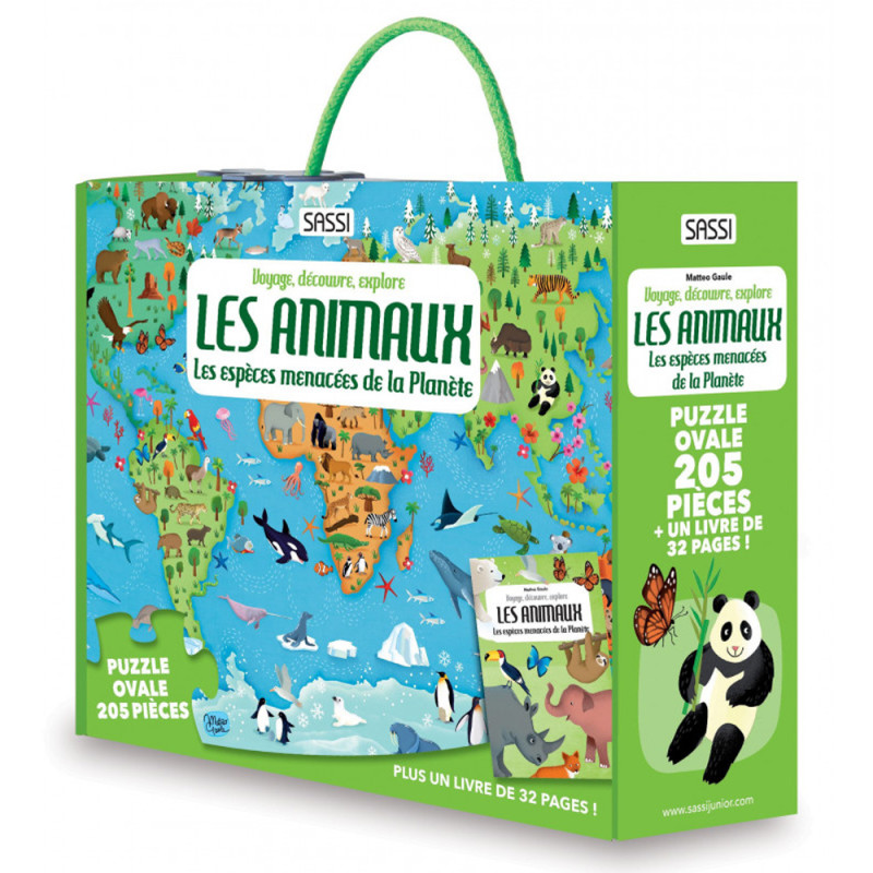 Sassi Junior Travel, Learn & Explore – Puzzle et livre sur les espèces en voie de disparition de la planète. Apprenez et explorez les animaux en voie de disparition de la terre avec cet ensemble de puzzle et de livre amusant et éducatif de