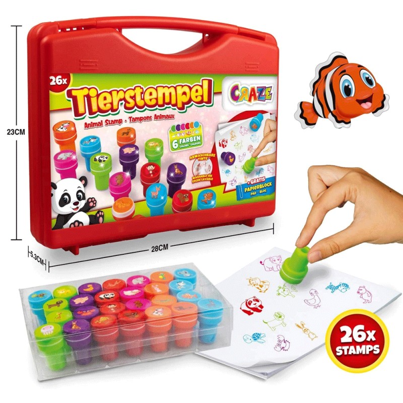 Jouez et apprenez avec les jeux éducatifs de Craze Le kit de timbres pour enfants Craze comprend 26 timbres pour enfants contenant toutes sortes de variétés d’animaux.