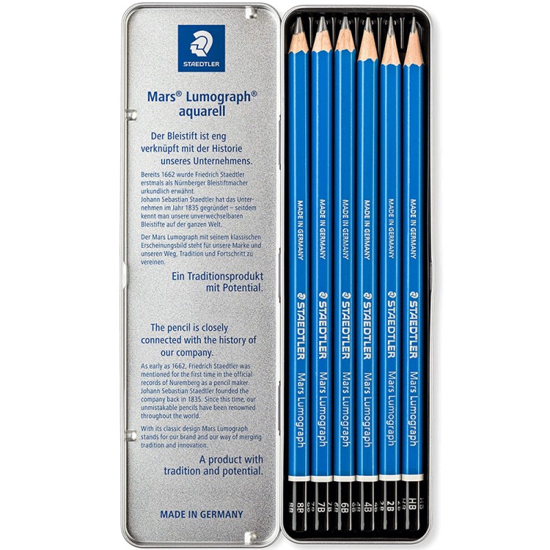 Coffret en métal contenant 6 crayons à dessin en degrés assortis