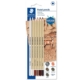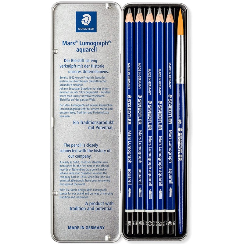 Coffret métal contenant 5 crayons graphite aquarelle en degrés assortis + 1 pinceau rond #8