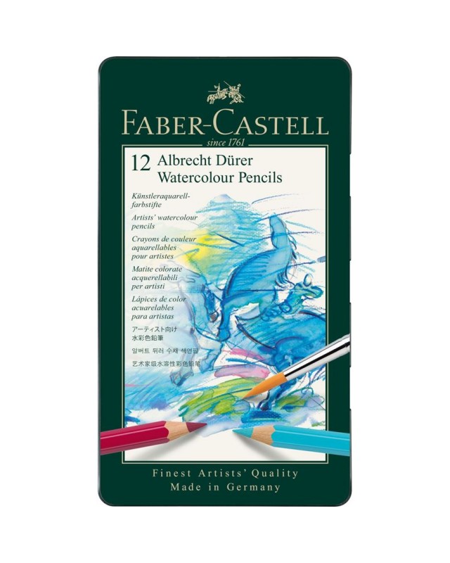 Les crayons de couleur aquarellables Albrecht Dürer permettent à l’artiste une expression variée du dessin, de la peinture et de l’aquarelle. Des matériaux de haute qualité et l’expérience de Faber-Castell depuis plus de 250 ans font en sorte que ces cray