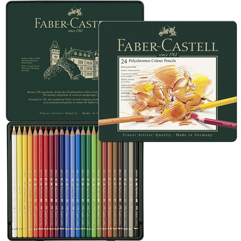 Crayons de couleur Polychromos, boîte métal de 24 pièces