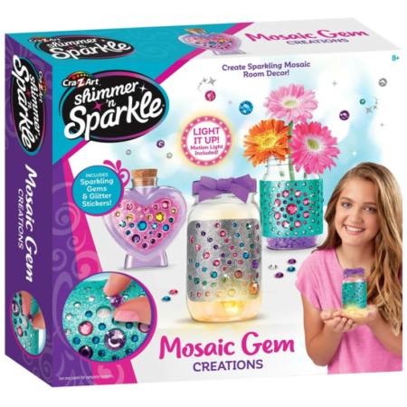 Mosaic Gem crée votre propre décor étincelant. Peignez d’incroyables créations en pierre de verre teinté dans de magnifiques couleurs prismatiques.