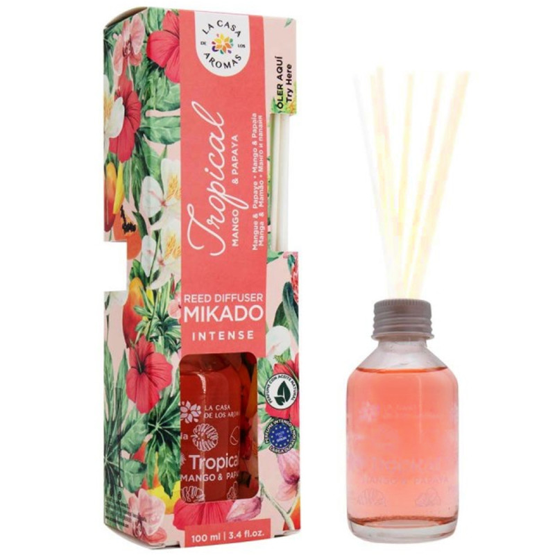 LA CASA DE LOS AROMAS INTENSO Bâtons parfumés, TROPICAL, 100 ml Un parfum fruité unique , parfait pour le printemps et l’été. Fruité, délicieux, croquant, croquant, doux et rafraîchissant parfum de fruits mélangés de framboises dans les notes de tête,