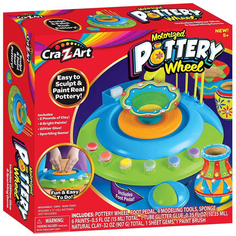 Créez de magnifiques projets d’argile avec ce kit amusant, comprenant un tour de potier motorisé, de l’argile séchant à l’air, des outils de sculpture, des accents chatoyants et six couleurs de peinture vives. De Cra-Z-Art !