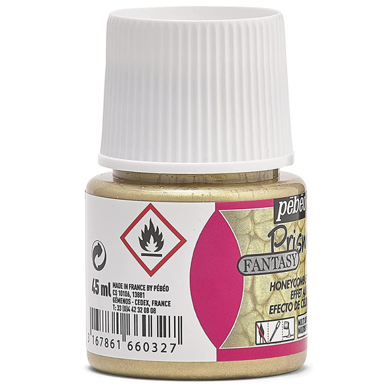 Peinture réactive à effet alvéolé, pour la décoration multi supports, couleur vieil or, de finition d’aspect précieux.