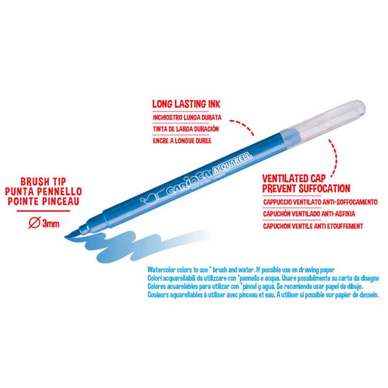 Amusez-vous avec vos couleurs Carioca Acquarell si vous utilisez de l’eau et le pinceau vous pouvez mélanger les couleurs comme une aquarelle. Il a une encre lavable.