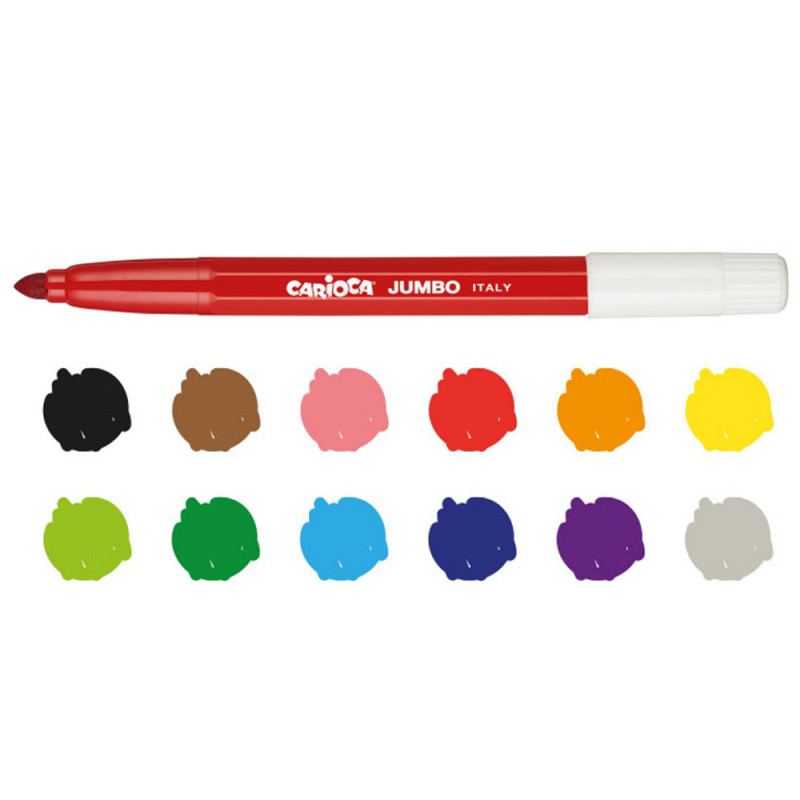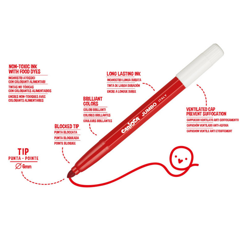Amusez-vous avec vos tout-petits et laissez-les utiliser nos couleurs Carioca Jumbo avec Maxi Tip, corps octogonal pour une manipulation facile et encre super lavable non toxique.
