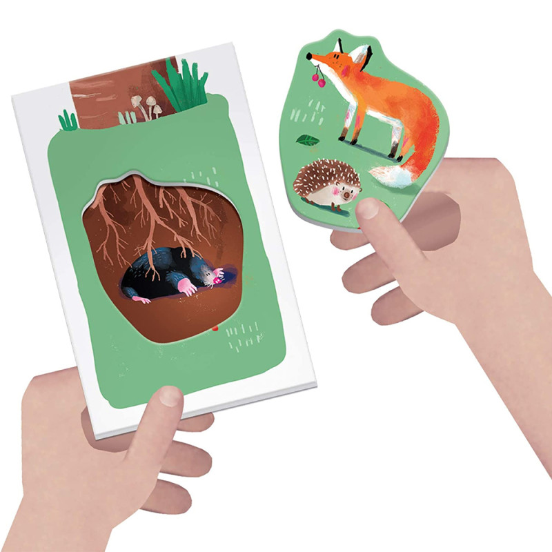Contenu : 12 cartes double face ; 12 formes amovibles ; instructions (français non garanti)