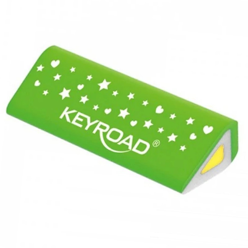Gomme keyroad roofix de forme triangulaire en 3 couleurs : rose, orange, vert