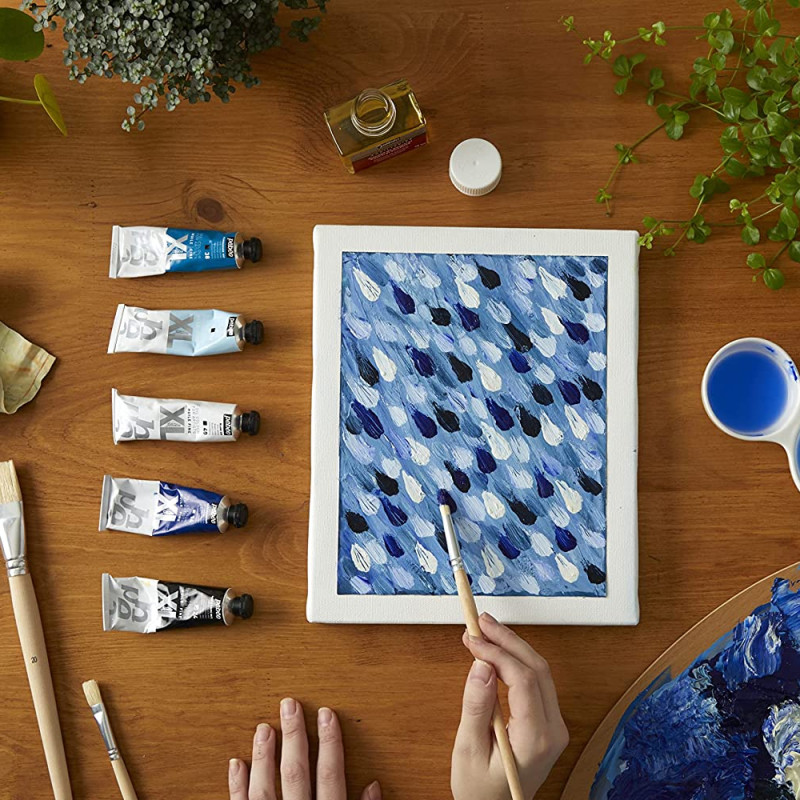 L’Huile Fine Studio XL peut être appliquée au pinceau ou au couteau (en couches fines ou épaisses), seule ou en mélange avec nos différents auxiliaires sur toile, carton, bois, …