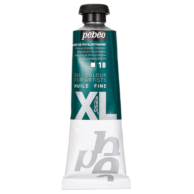 Peinture à l’huile de qualité fine couleur émeraude de phtalocyanine. La nuance est d’un vert froid, de finition brillante-satinée. Couleur transparente et très résistante à la lumière.