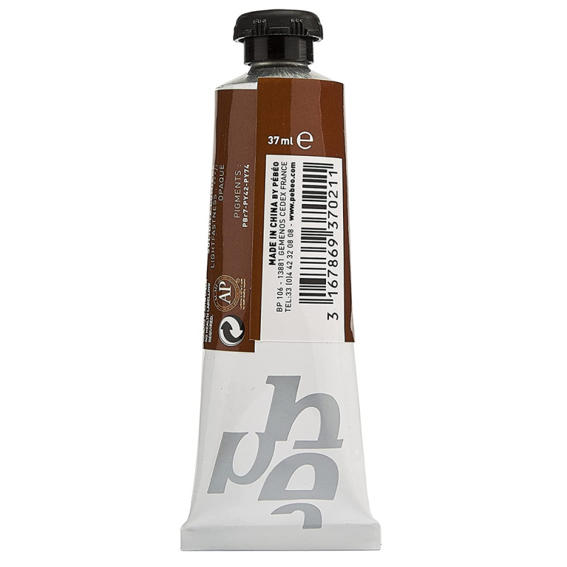 Peinture à l’huile de qualité fine couleur sienne naturelle. La nuance est d’un brun légèrement jaune, de finition brillante-satinée. Couleur opaque et très résistante à la lumière.