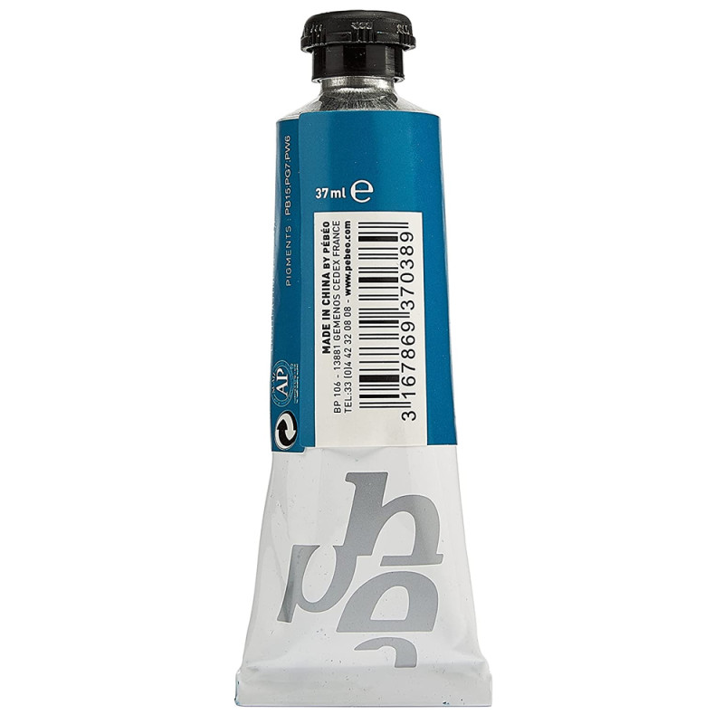 Peinture à l’huile de qualité fine couleur turquoise vif, de finition brillante-satinée. Couleur opaque et très résistante à la lumière.