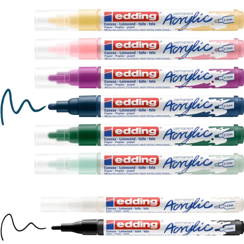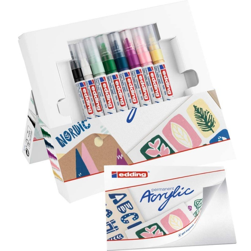 Kit pour débutants peinture acrylique petit nordique : 2x edding 5300 Marqueur acrylique fin et 6x edding 5100 Marqueur acrylique moyen