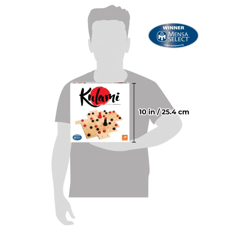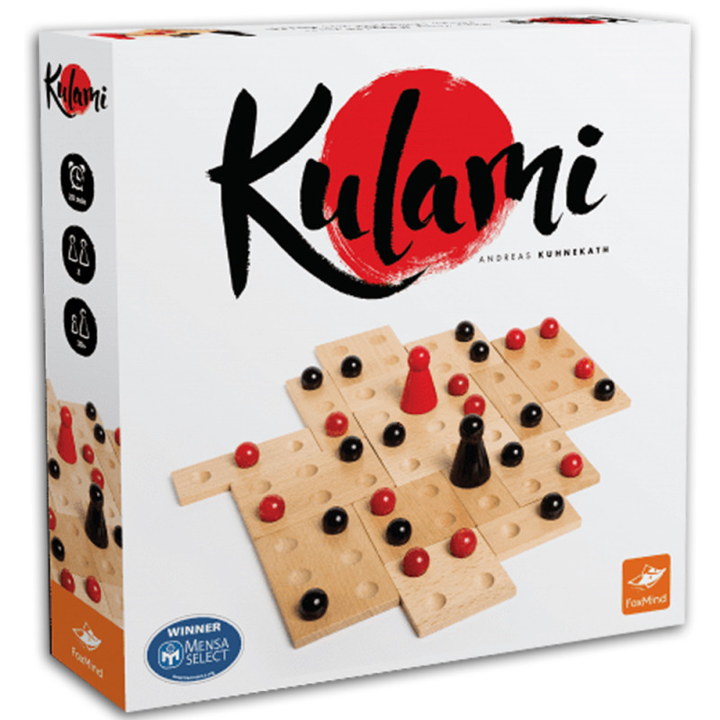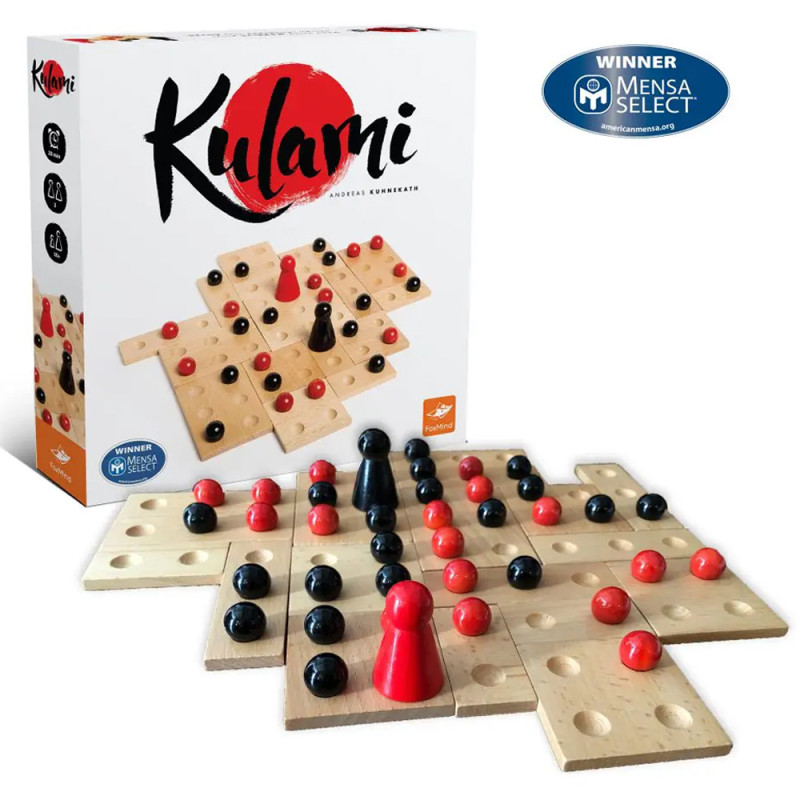Kulami est un jeu simple et élégant pour 2 joueurs. Assemblez les tuiles en bois pour créer un plateau différent à chaque partie. Les joueurs, à leur tour, placent une bille pour tenter de contrôler chacune des tuiles. Soyez rusés et limitez les procha