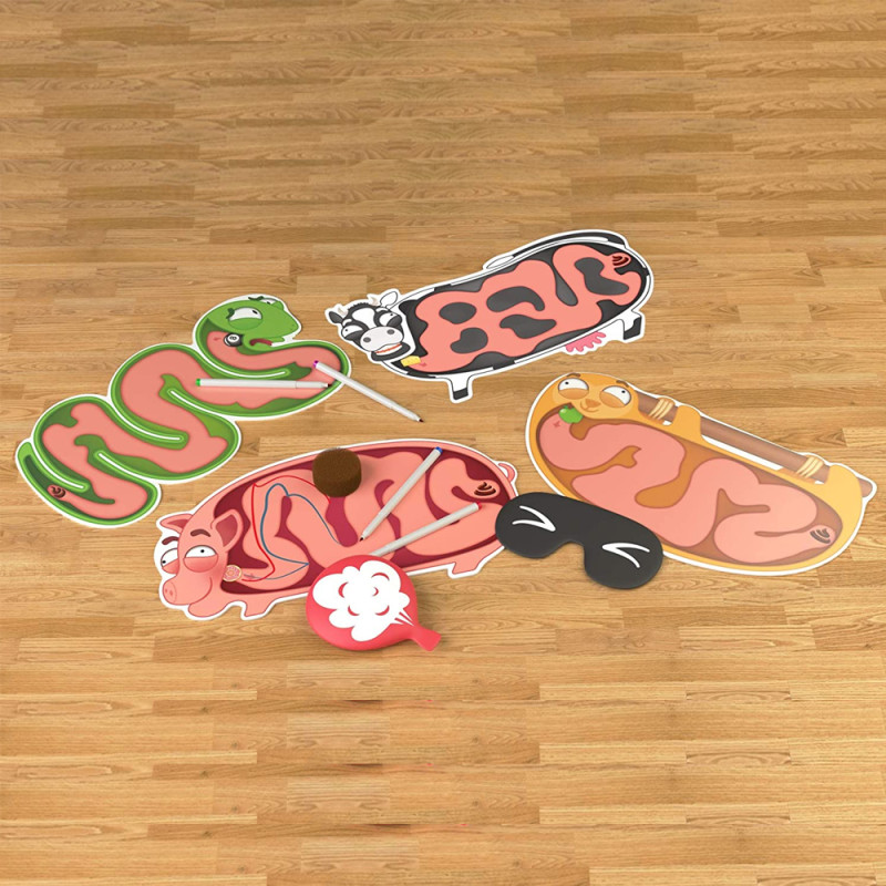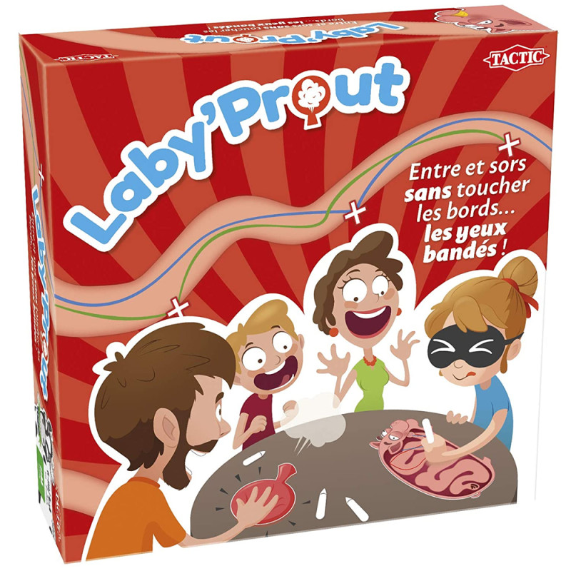 Trouvez la sortie, oui, mais les yeux fermés ! laby prout est un jeu ambiance et de course. À tour de rôle, les joueurs aideront l’animal gourmand à digérer ce qui lui reste sur l’estomac. Pour cela, le joueur dont c’est le tour, masque ses yeux puis e