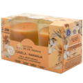 Bougie parfumée dans un verre à l’arôme intense de Cannelle Orange et formulée à base d’Huiles Essentielles. Arôme intense et parfum aux extraits naturels (5%). Il est composé de paraffines et de cires végétales (95%)