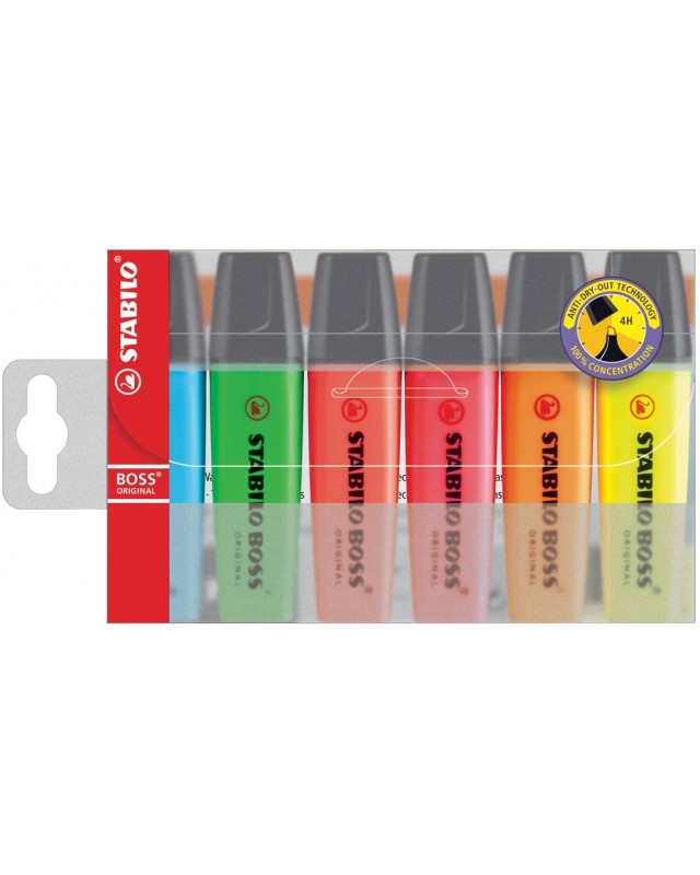 Pochette de 6 surligneurs STABILO Boss Original-Fluo-
