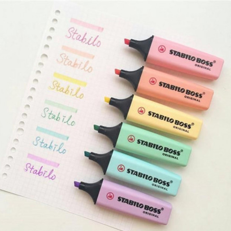 Les encres à base d’eau Stabilo Boss aux couleurs pastel garantissent une bonne tenue à la lumière sur tout type de papier, y compris les papiers de fax et de copie. Maintenant avec une longueur d’écriture 30% plus longue et un temps de cap-off accru.<