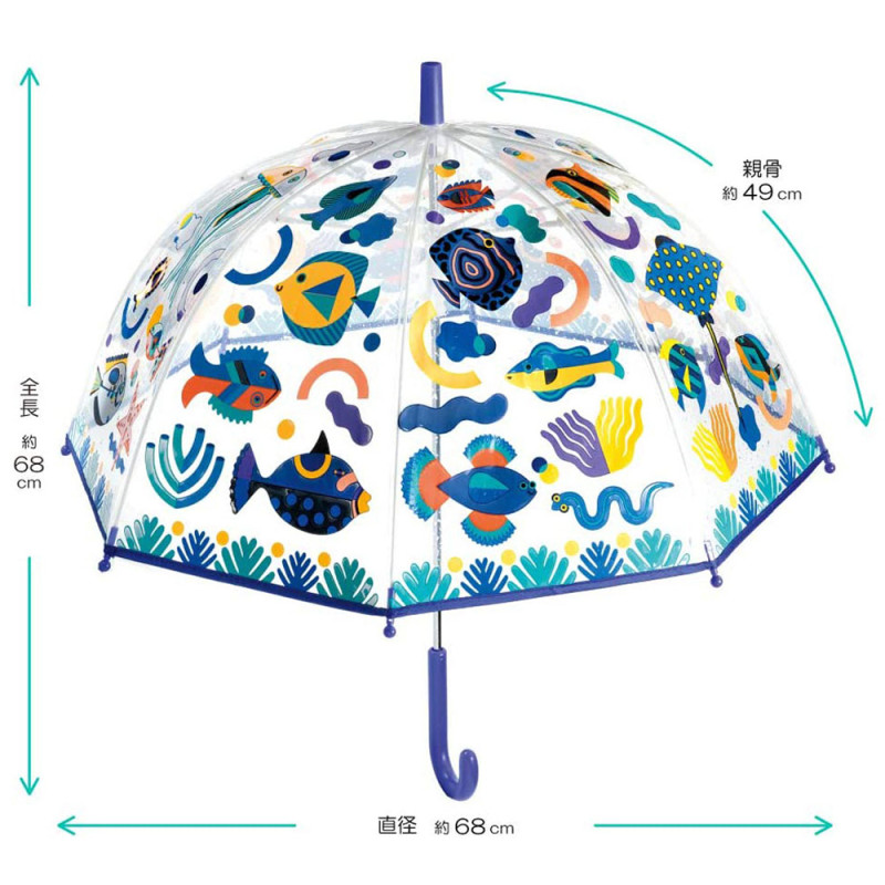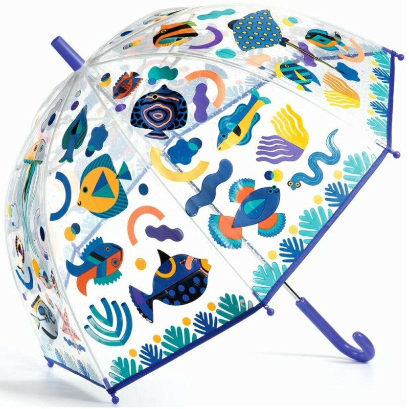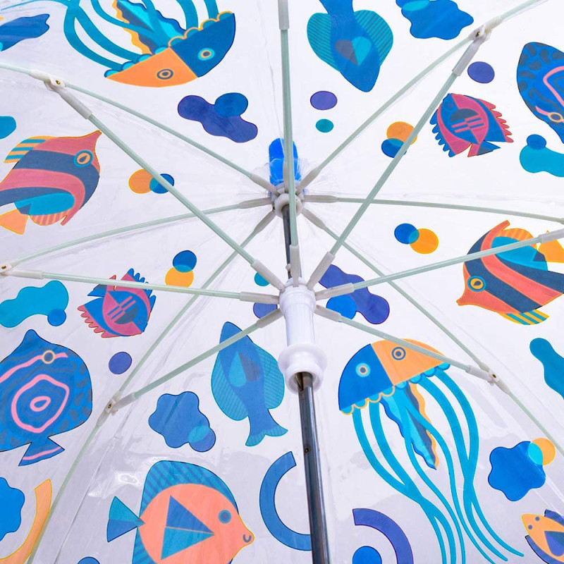 Ce parapluie s’acquitte non seulement parfaitement de son devoir direct – protection contre la pluie, mais égaie également son design attrayant et lumineux à l’image d’une variété de poissons. Lorsque le parapluie est mouillé, la couleur du motif sur l