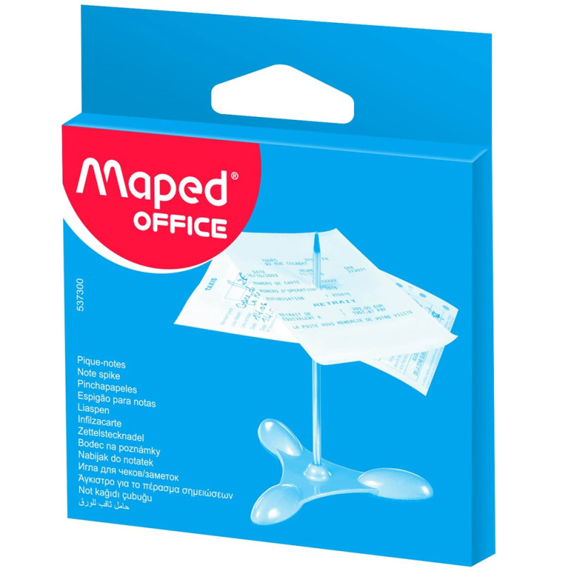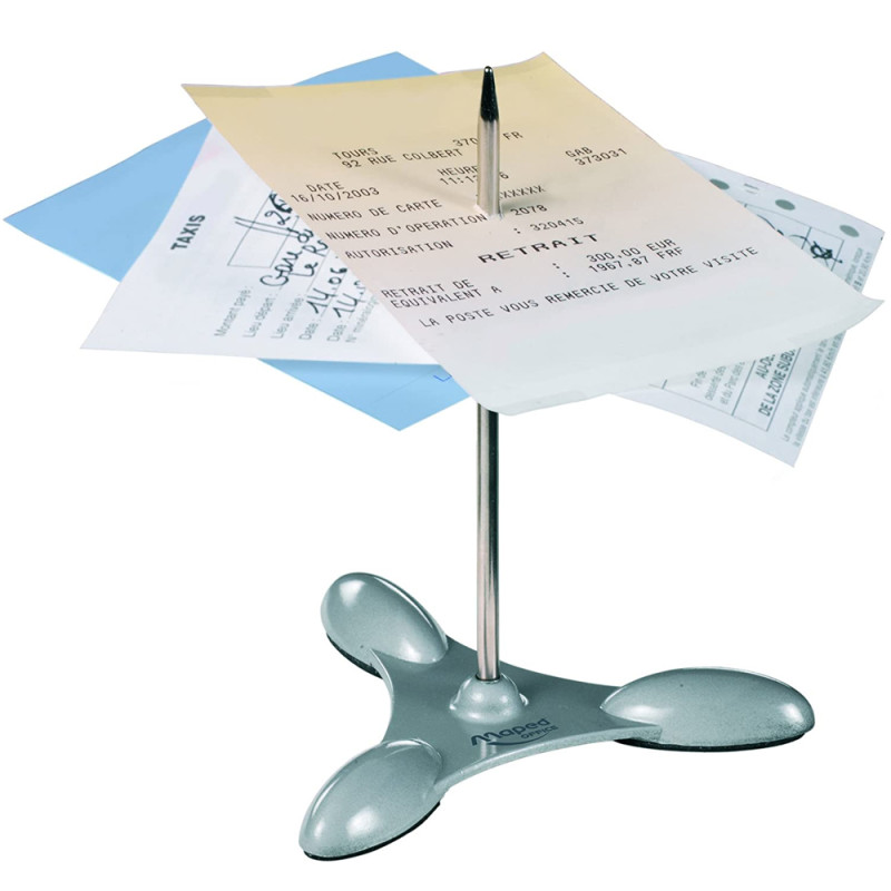 Maped pique-notes, socle et épingle en métal, argent, hauteur de l’épingle 110 mm, avec trois pieds, dans une boîte en So carton avec suspension.