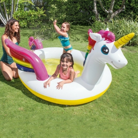 La Piscine Intex 57441 en forme de Licorne Gonflable est fabriqué en vinyle multicouche afin de garantir une grande fiabilité et une résistance étonnante. En plus, tous les matériaux utilisés sont hypoallergéniques et soigneusement sélectionnés pour ga