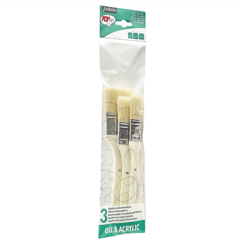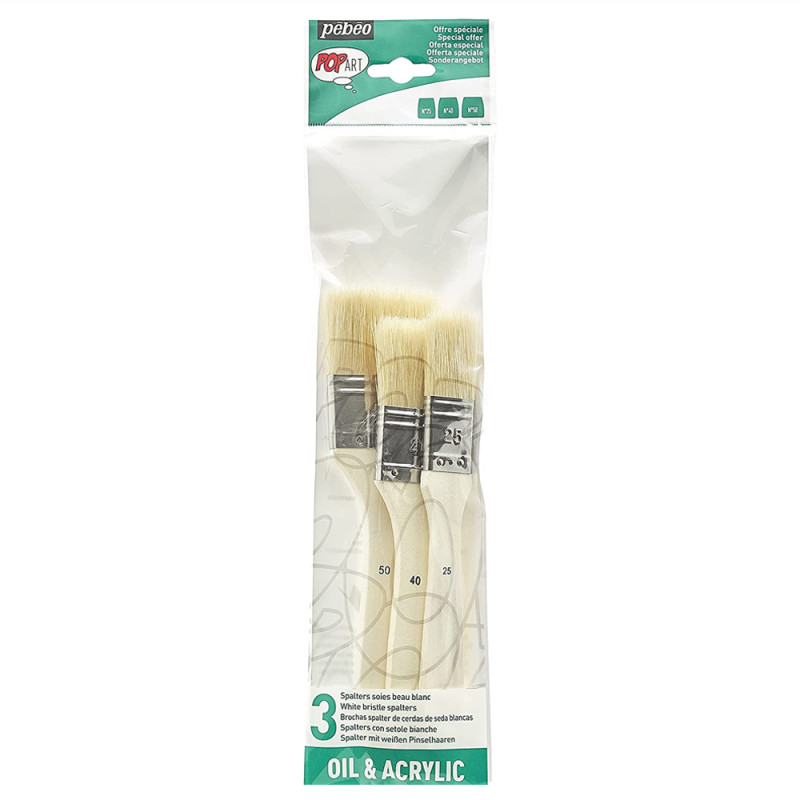 -Cette pochette Pébéo Beaux arts comprend 3 spalters Soies beau blanc manche long n°25, 40, 50. Les Spalters peuvent être utilisés pour les glacis ou comme de larges pinceaux plats. Adaptés à tous les budgets, les brosses Soies Beau Blanc sont des bros